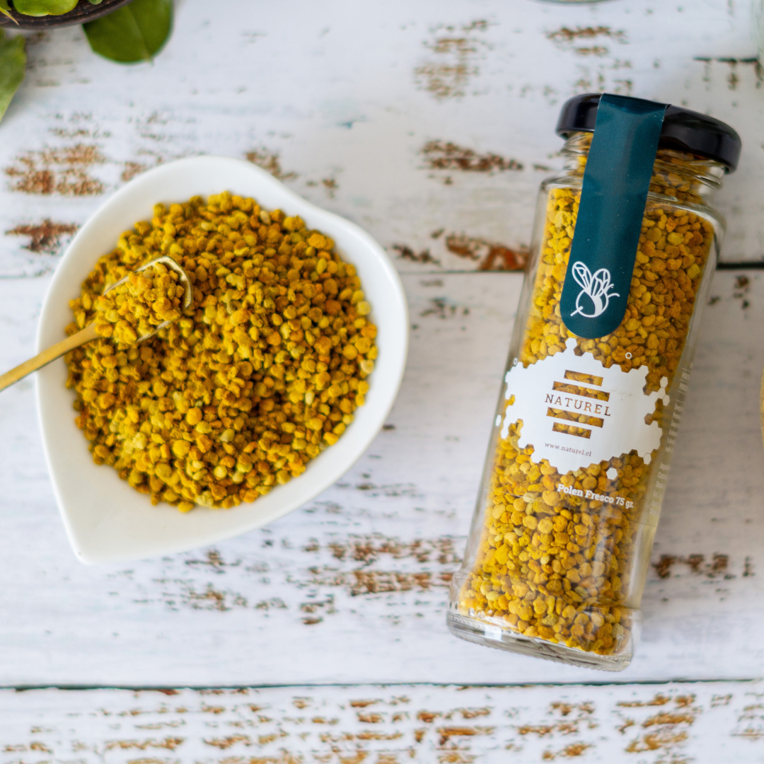 El polen que se conserva fresco es un superalimento muy completo, una cucharada sopera contiene las propiedades de 2 kilos de fruta fresca.